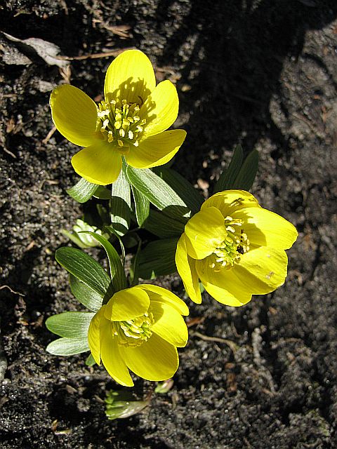 Die Winterlinge freuen sich über die ersten warmen Sonnenstrahlen und lachen der Sonne entgegen. |