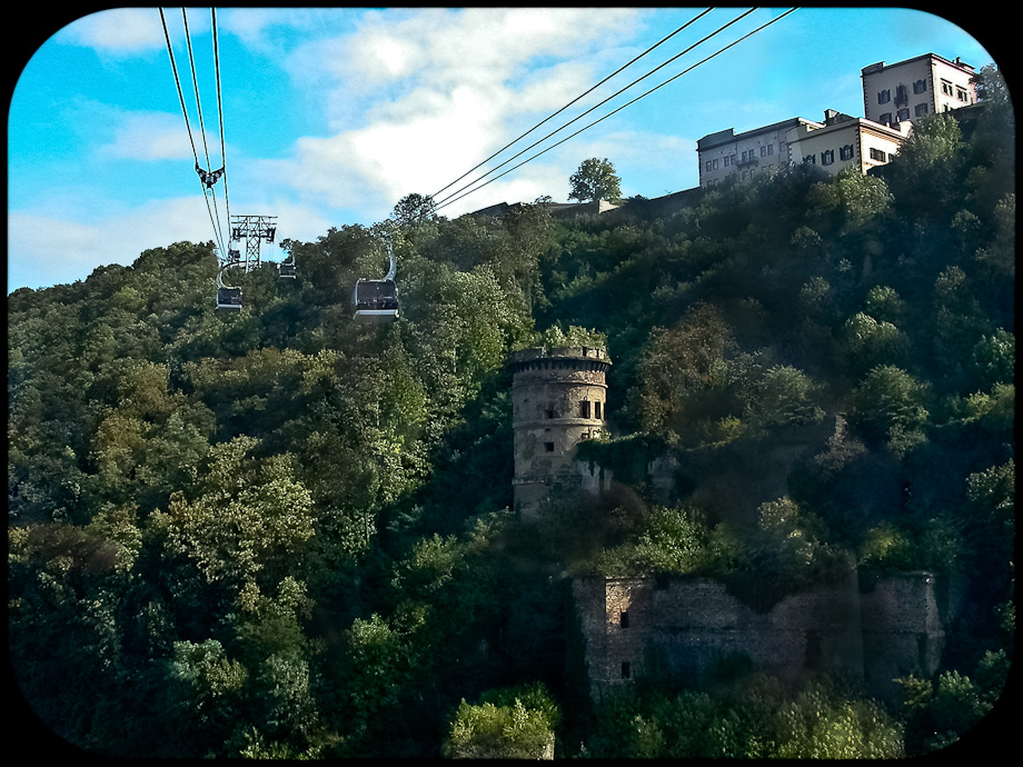 Mit einem Blick aus der Gondel auf die Festung Ehrenbreitstein verabschieden wir uns von der Buga 2011 in Koblenz. |