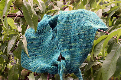 Baktus ist fertig. Ich habe 200g verstrickt. Er ist 1,70 lang und an der breitesten Stelle 40 cm breit. Dort waren es 100 Maschen, dann habe ich wieder abgenommen.
