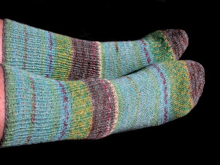 sehr sch?n, deine  "Hundertwasser"!  :klatsch2: Du hast sicher noch was ?brig von dem 100g-Kn?uel; ich hab bei einem neuen Paar den Schaft damit noch hingekriegt und auch die Ferse, den Fu? hab ich dann uni dazu passend gestrickt. Sieht gut aus und die Reste sind auch gleich verbraucht. Ja, bei dem ollen Regen kriegt man wieder Lust.....  ?)% ?)% ?)%